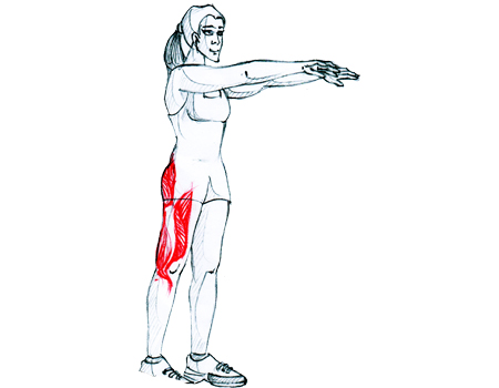 To focus the exercise more on your inner thighs and buttocks, place your feet roughly double shoulder width apart.