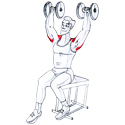 If you have neck, shoulder, lowerback and elbow problems, you should be careful when performing this exercise. You can perform dumbbell shoulder presses while sitting or standing. If you choose to sit, use a bemch with back support.
