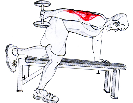 - You should keep your head, neck and back in a straight line when performing the tricep kickback to avoid straining your neck or back. To help keep your neck straight, look down at the bench instead of looking up or to the side. You should also keep your abdominal muscles tightened throughout the exercise to help protect your back.