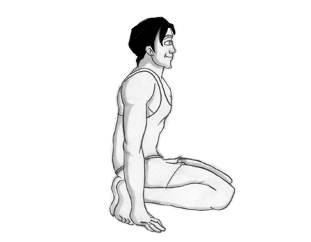 - For the next few inhalations, lift your torso strongly as you continue to actively contract your front thighs; on each successive exhalation, strongly lift your sitting bones as you consciously relax your hamstrings. As you do this, deepen the hollow in your lower back.