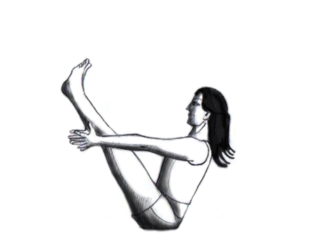 - Often it's difficult to straighten the raised legs. Bend your knees and loop a strap around the soles of your feet, gripping it firmly in your hands. Inhale, lean the torso back, then exhale and lift and straighten your legs, adjusting the strap to keep it taut. Push the feet firmly against the strap.